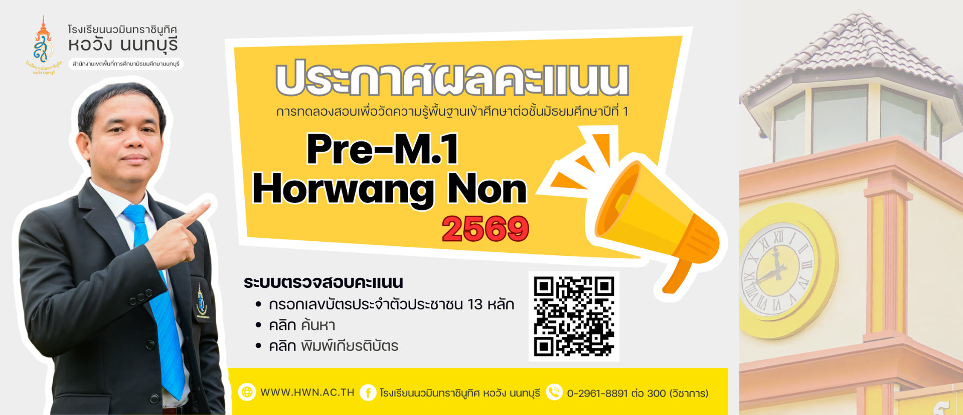 ประกาศรายชื่อผู้มีสิทธิ์เข้าทดลองสอบและตารางสอบ Pre-M.1 Horwang Non ปีการศึกษา 2569