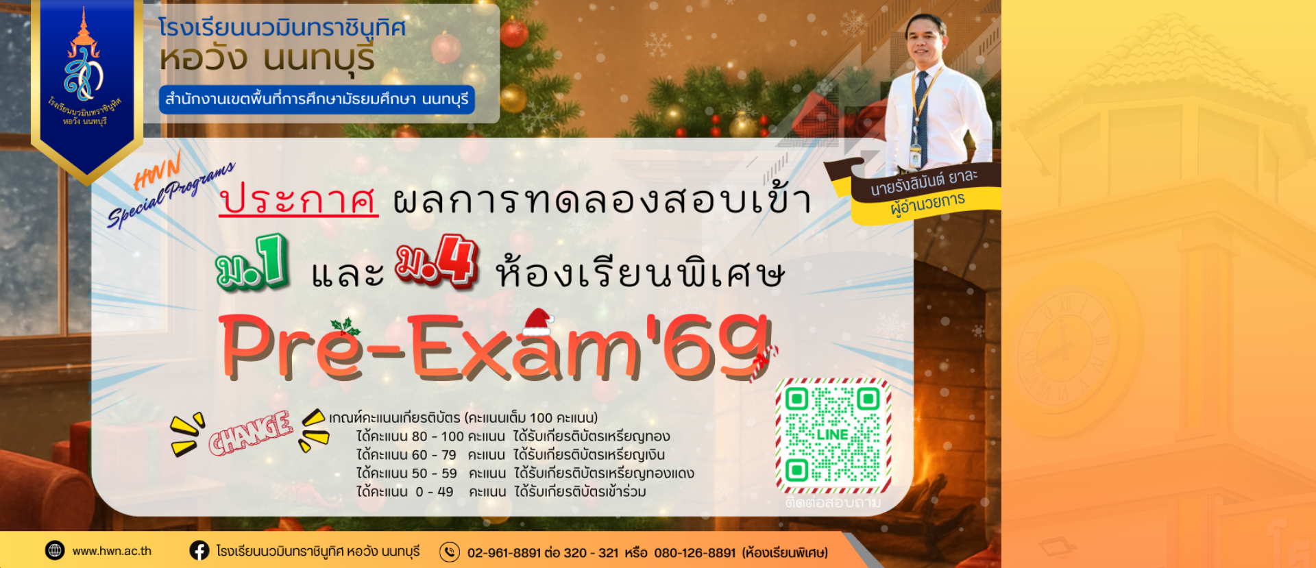 ประกาศ ผลการทดลองสอบ Pre-Exam 69 ม.1 และ ม.4 ห้องเรียนพิเศษ ปีการศึกษา 2569