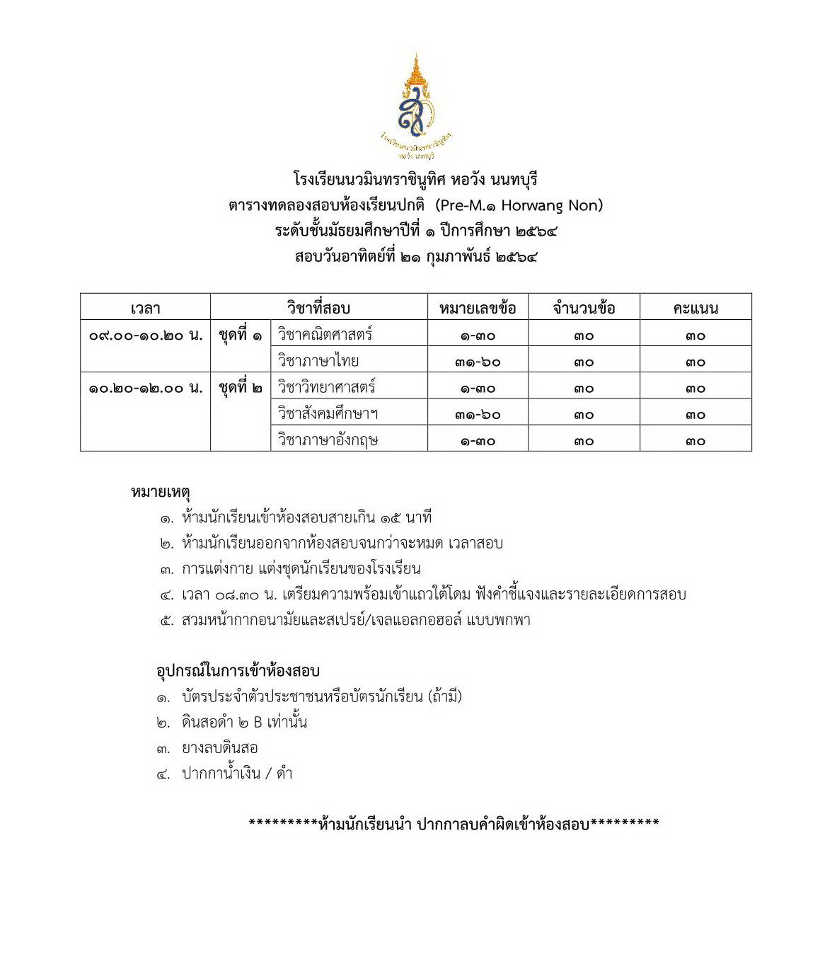 รายละเอียด"ทดลองสอบเข้า ม.1 หอวังนนท์" Pre-M.1 HORWANG NON
