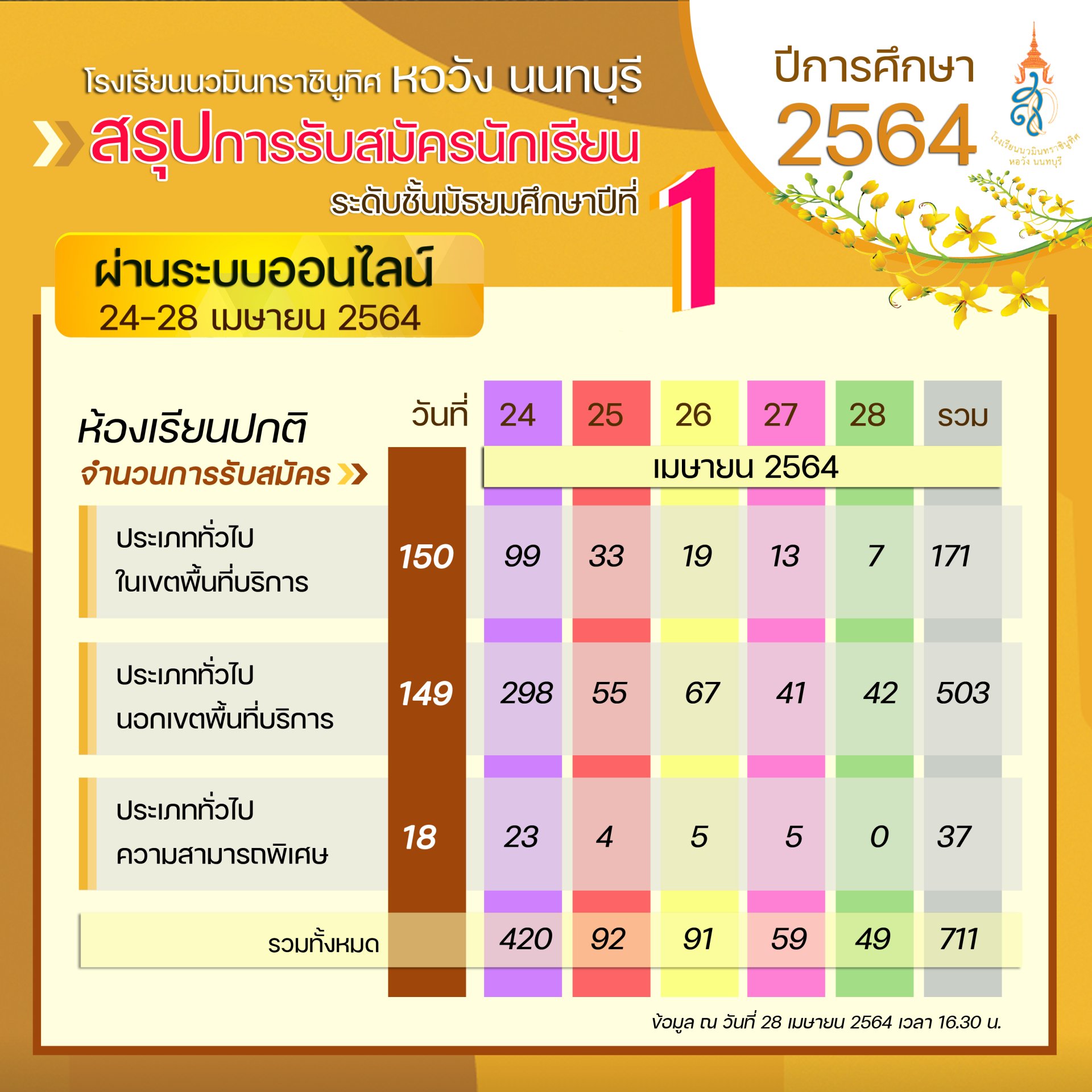 สรุปสถิติการรับสมัครนักเรียนชั้นมัธยมศึกษาปีที่ 1 และ 4