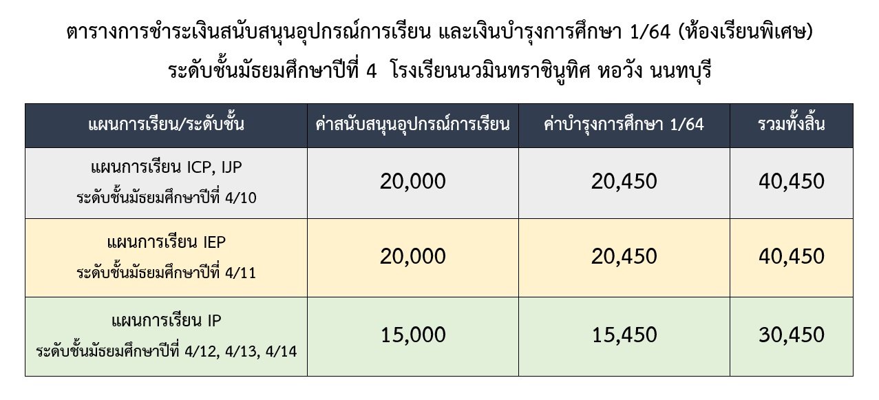 เลื่อนวันรายงานตัวและชำระเงินค่าสนับสนุนอุปกรณ์การเรียนและค่าบำรุงการศึกษา ภาคเรียนที่ 1/2564 ระดับชั้นมัธยมศึกษาปีที่ 4 ให้เป็นในรูปแบบออนไลน์