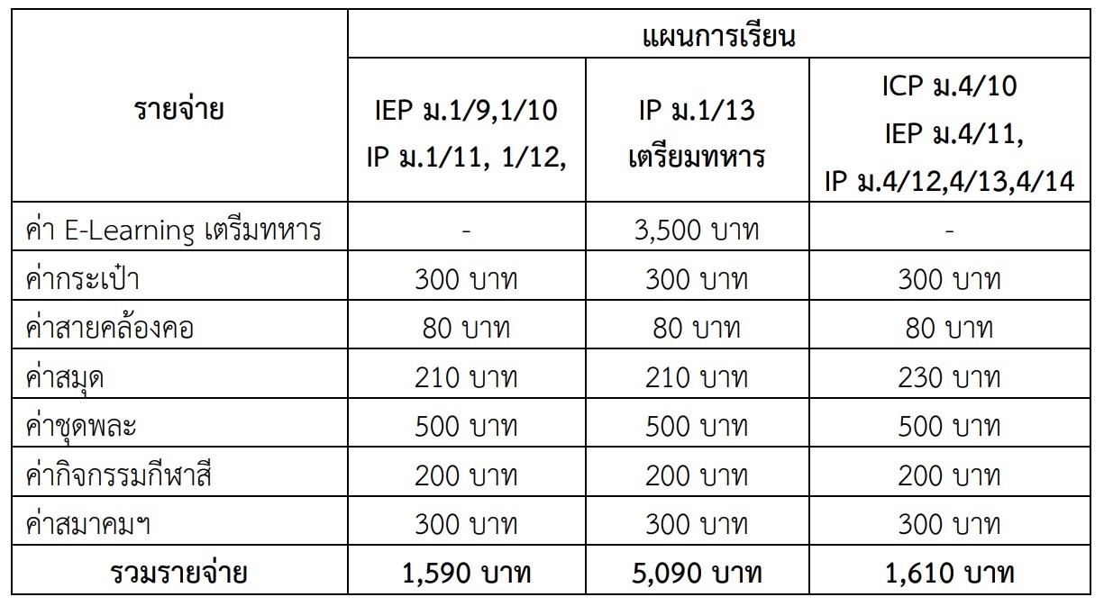 ***หมายเหตุ : ค่าใช้จ่ายอื่น ๆ ตามตาราง ให้ชำระเงินในวันมอบตัว***