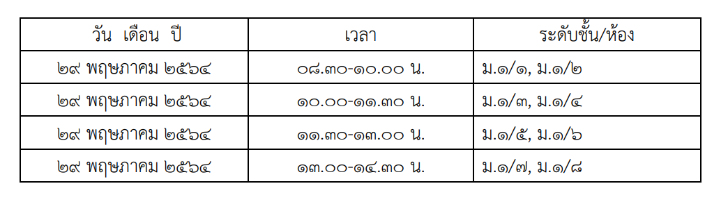 *** รายชื่อนักเรียนประจำห้องเรียนจะประกาศให้ทราบภายในวันพฤหัสบดีที่ 27 พฤษภาคม พ.ศ. 2564