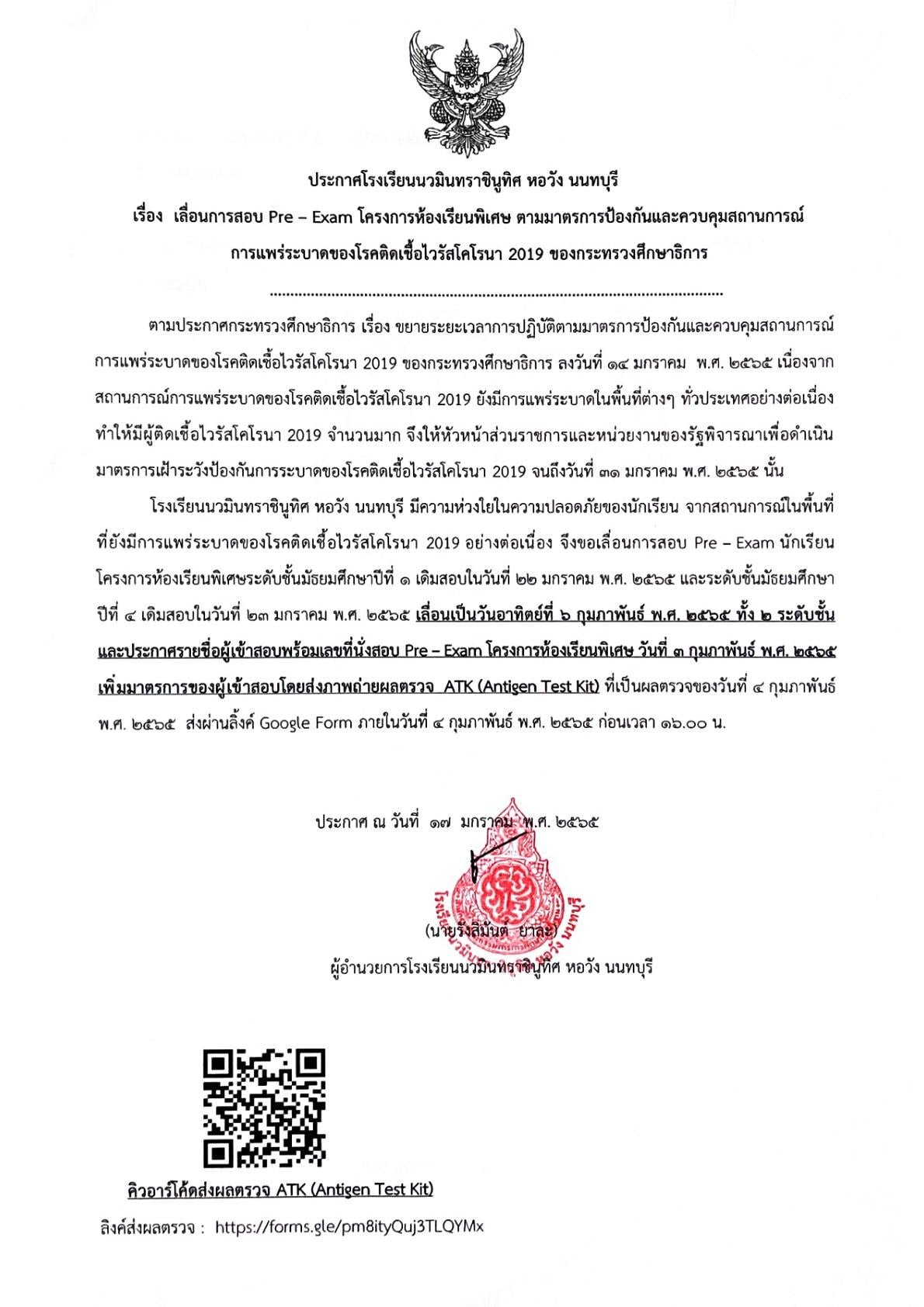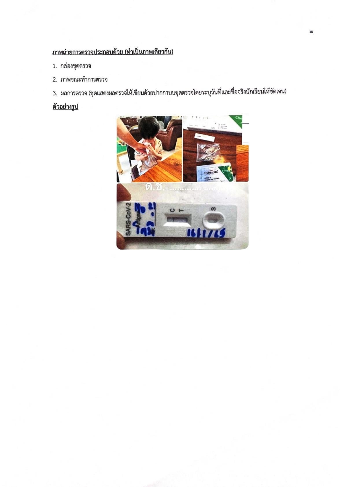 เพื่อเพิ่มมาตรการป้องกันโควิค-19 ผู้เข้าสอบต้องส่งภาพถ่ายผลตรวจ ATK (Antigen Test Kit) ที่เป็นผลตรวจของวันที่ 4 กุมภาพันธ์ พ.ศ. 2565 ส่งผ่านลิ้งค์ Google Form ภายในวันที่ 4 กุมภาพันธ์ พ.ศ. 2565