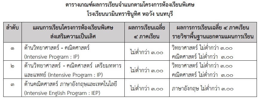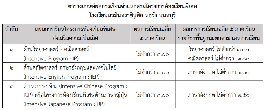 ๒.๓ นักเรียนที่จะสมัครโครงการห้องเรียนพิเศษ ด้านคณิตศาสตร์ ภาษาอังกฤษและเทคโนโลยี (Intensive English Program : IEP)