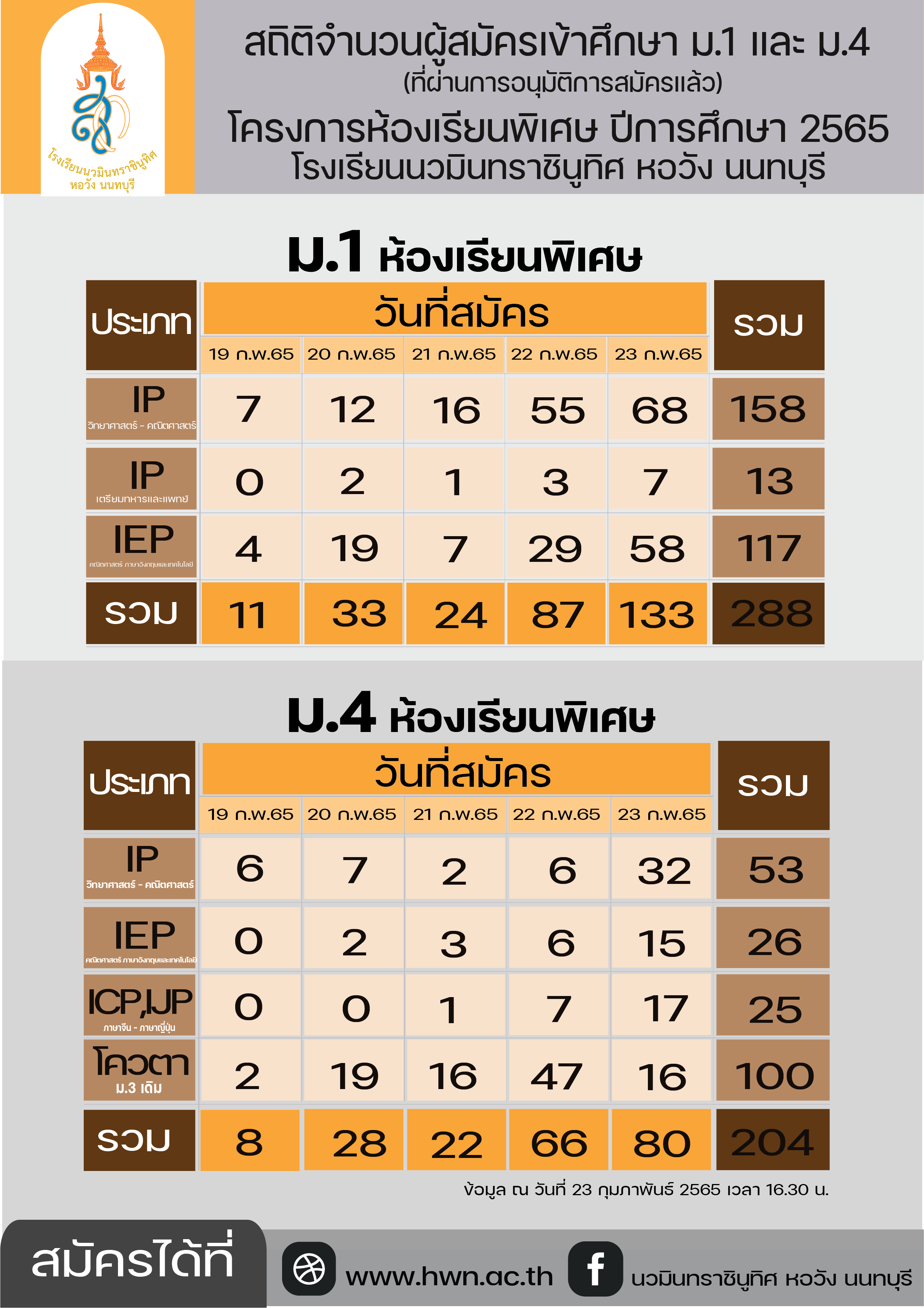 โครงการห้องเรียนพิเศษ ปีการศึกษา 2565