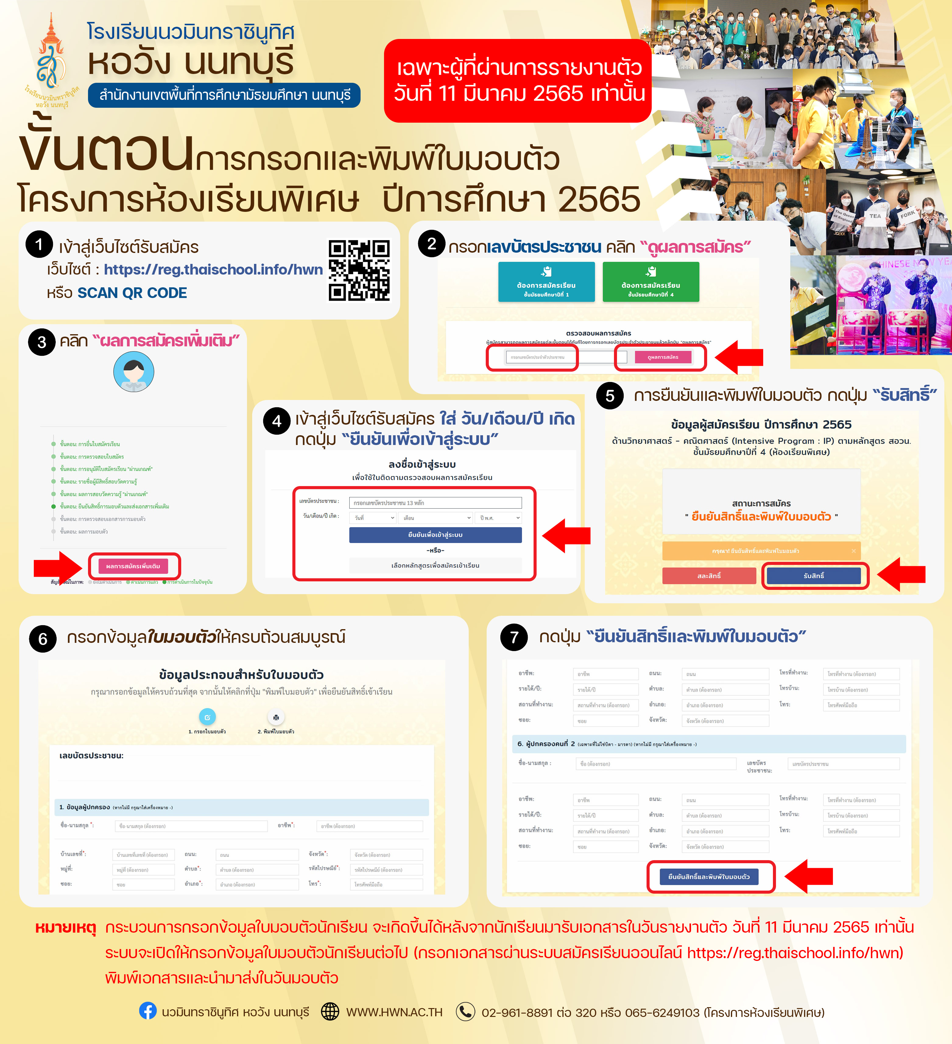 ขั้นตอนการกรอกและพิมพ์ใบมอบตัว โครงการห้องเรียนพิเศษ ปีการศึกษา 2565