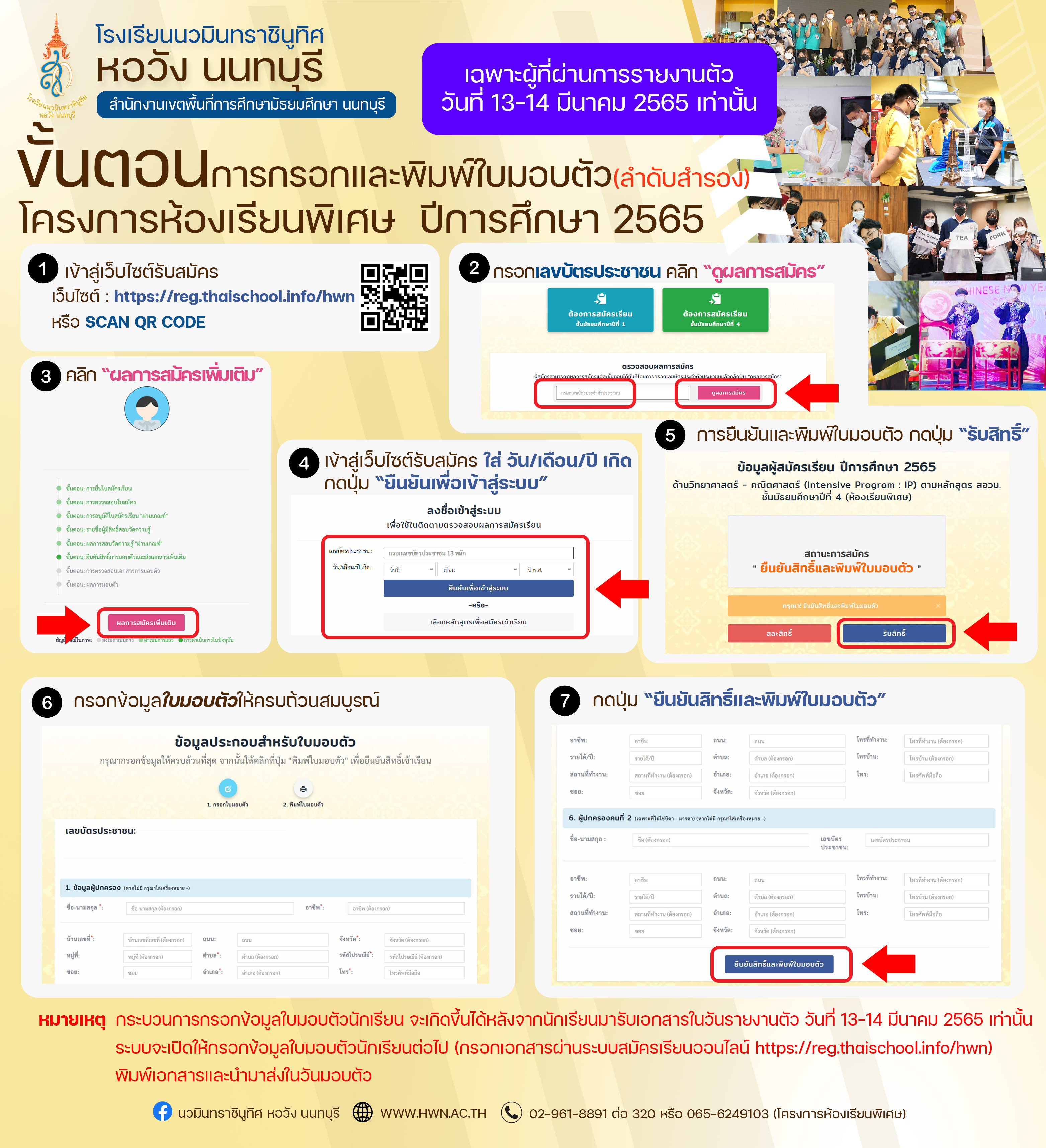 ขั้นตอนการกรอกและพิมพ์ใบมอบตัว โครงการห้องเรียนพิเศษ ปีการศึกษา 2565
