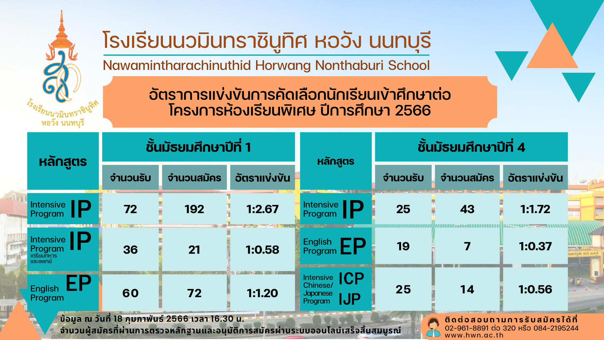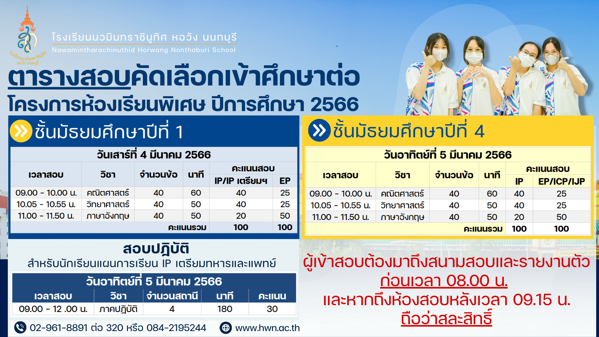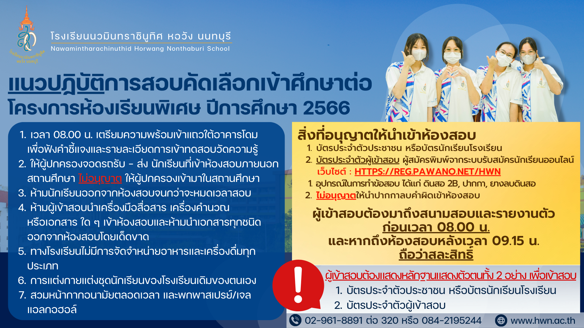 โครงการห้องเรียนพิเศษ โรงเรียนนวมินทราชินูทิศ หอวัง นนทบุรี ปีการศึกษา 2566