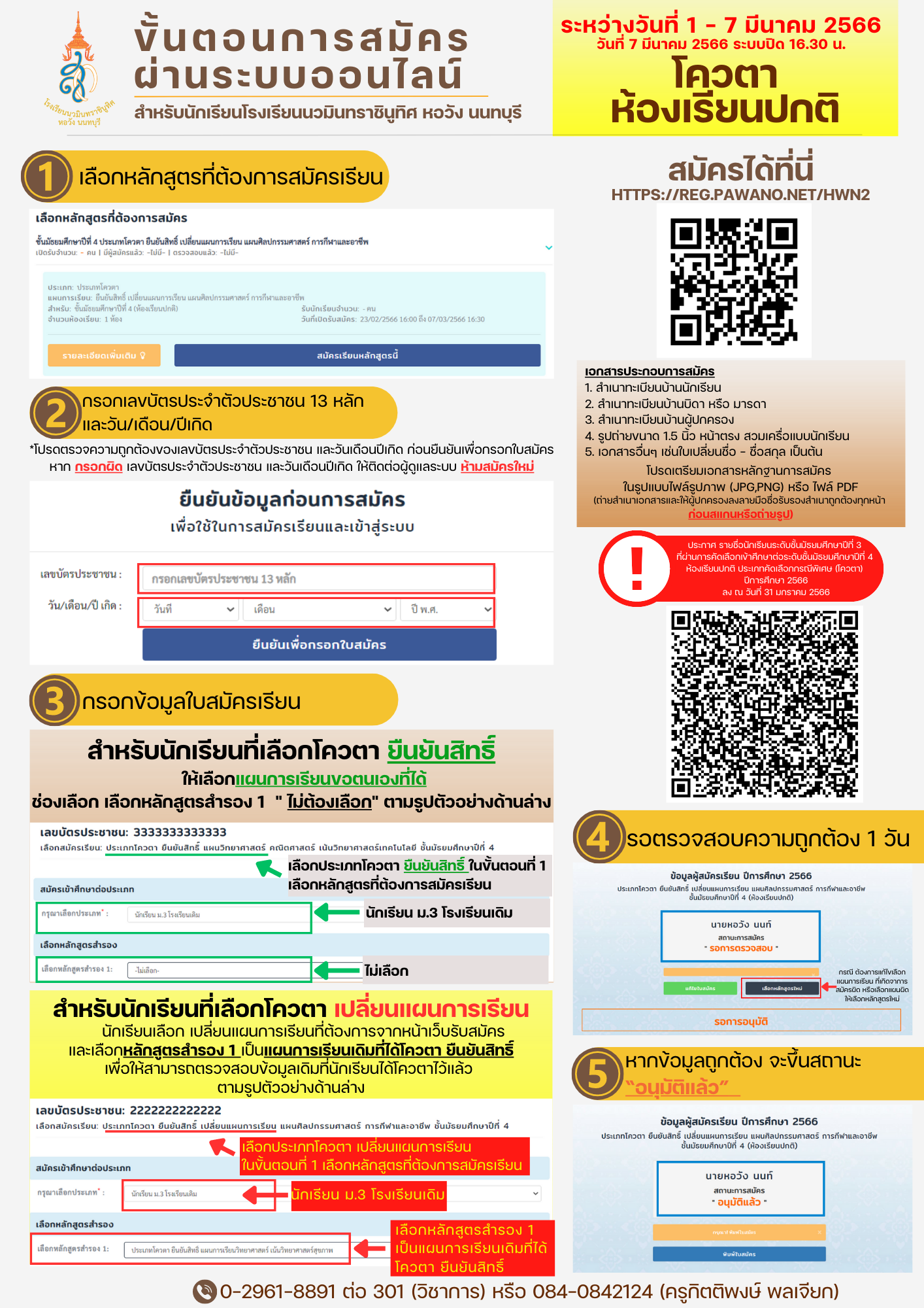ห้องเรียนปกติประเภทคัดเลือกกรณีพิเศษ (โควตา) ปีการศึกษา 2566