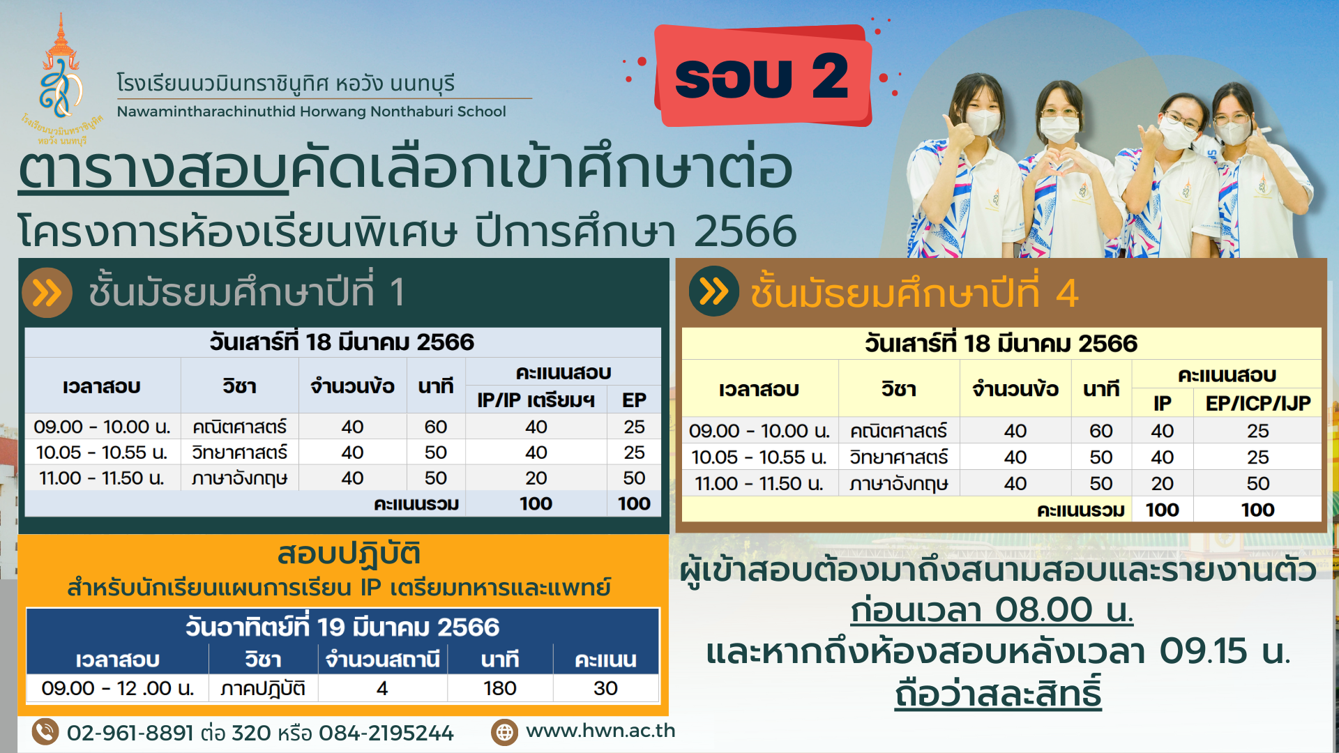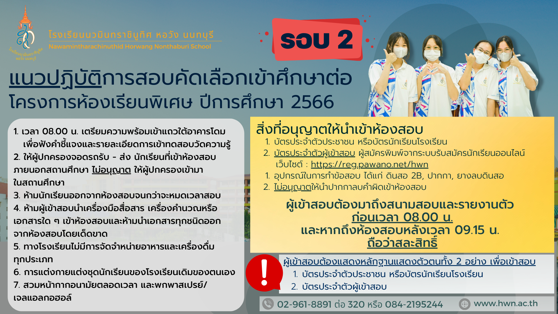 โครงการห้องเรียนพิเศษ โรงเรียนนวมินทราชินูทิศ หอวัง นนทบุรี ปีการศึกษา 2566