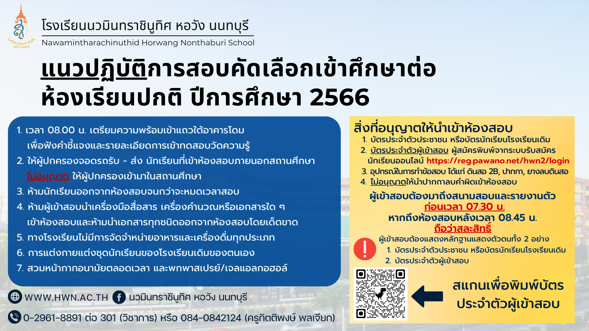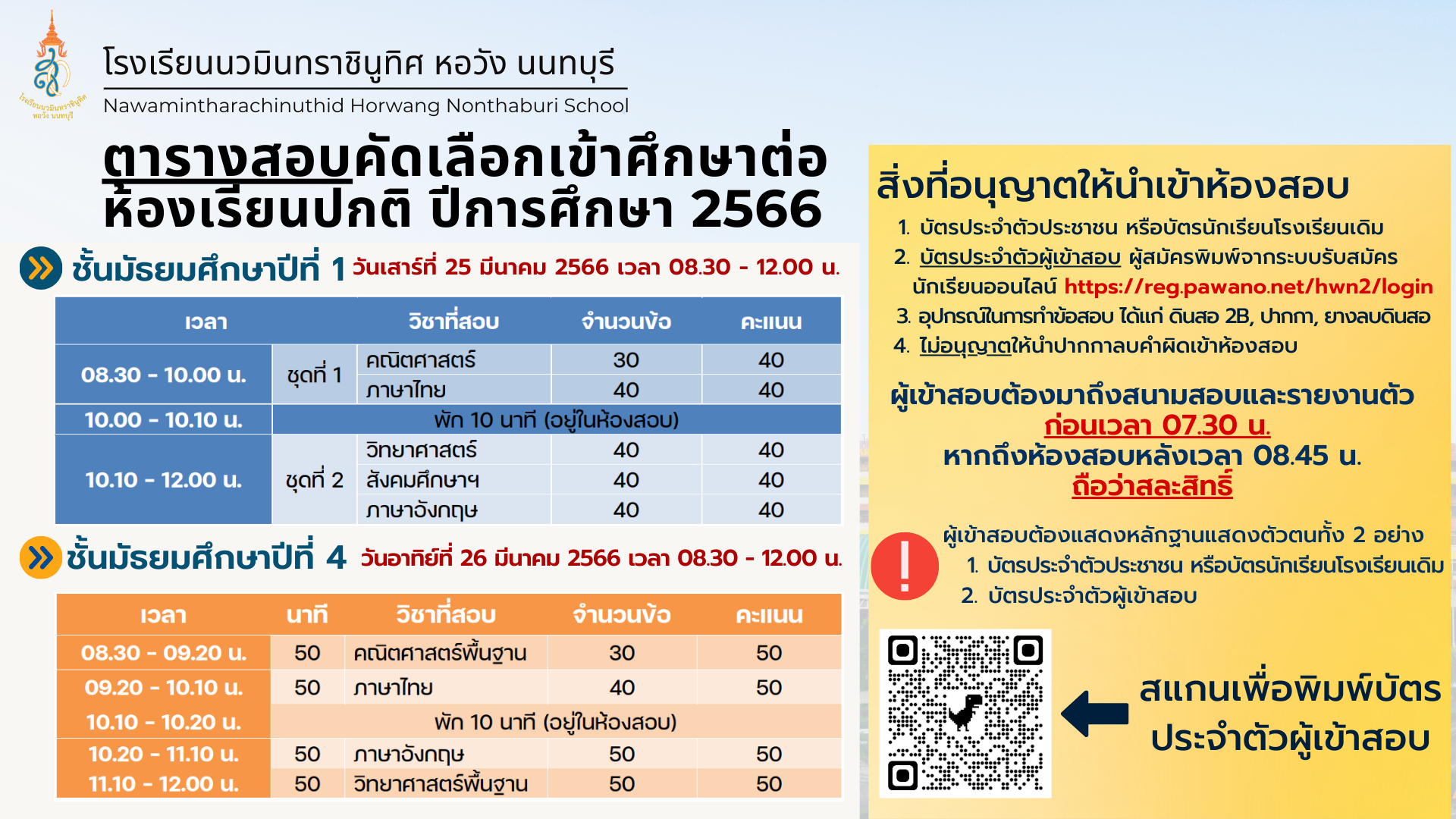 ปีการศึกษา 2566 ห้องเรียนปกติ