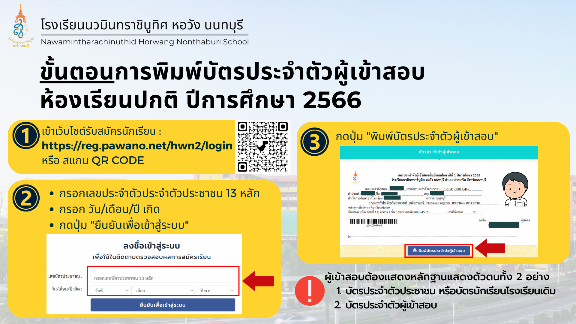ผู้มีสิทธิ์เข้าสอบทุกคนต้องพิมพ์บัตรประจำตัวผู้เข้าสอบ