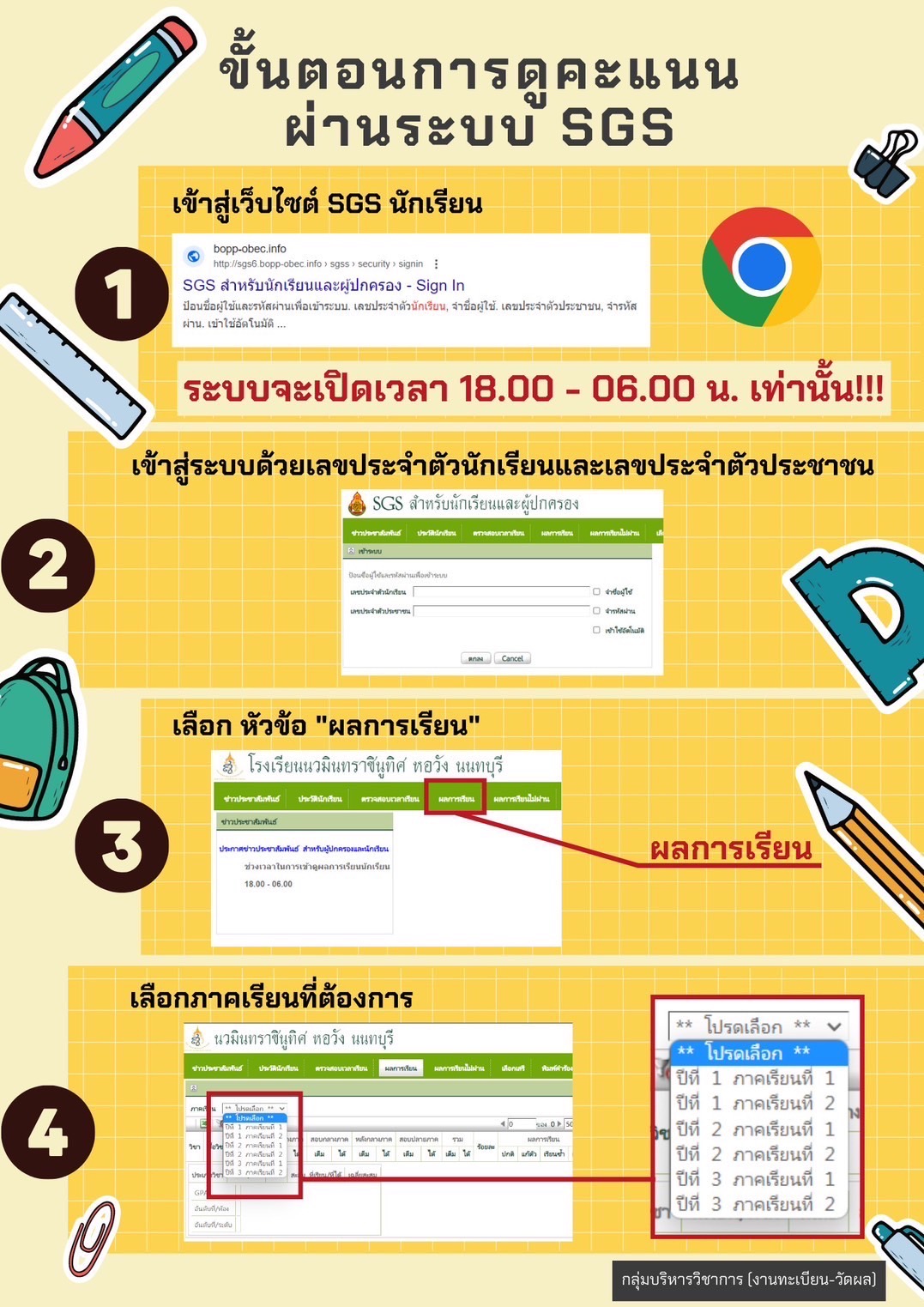 ขั้นตอนการเข้าดูคะแนนเก็บ/คะแนนสอบกลางภาค/ปลายภาคของนักเรียนผ่านระบบ sgs โรงเรียนนวมินทราชินูทิศ หอวัง นนทบุรี
