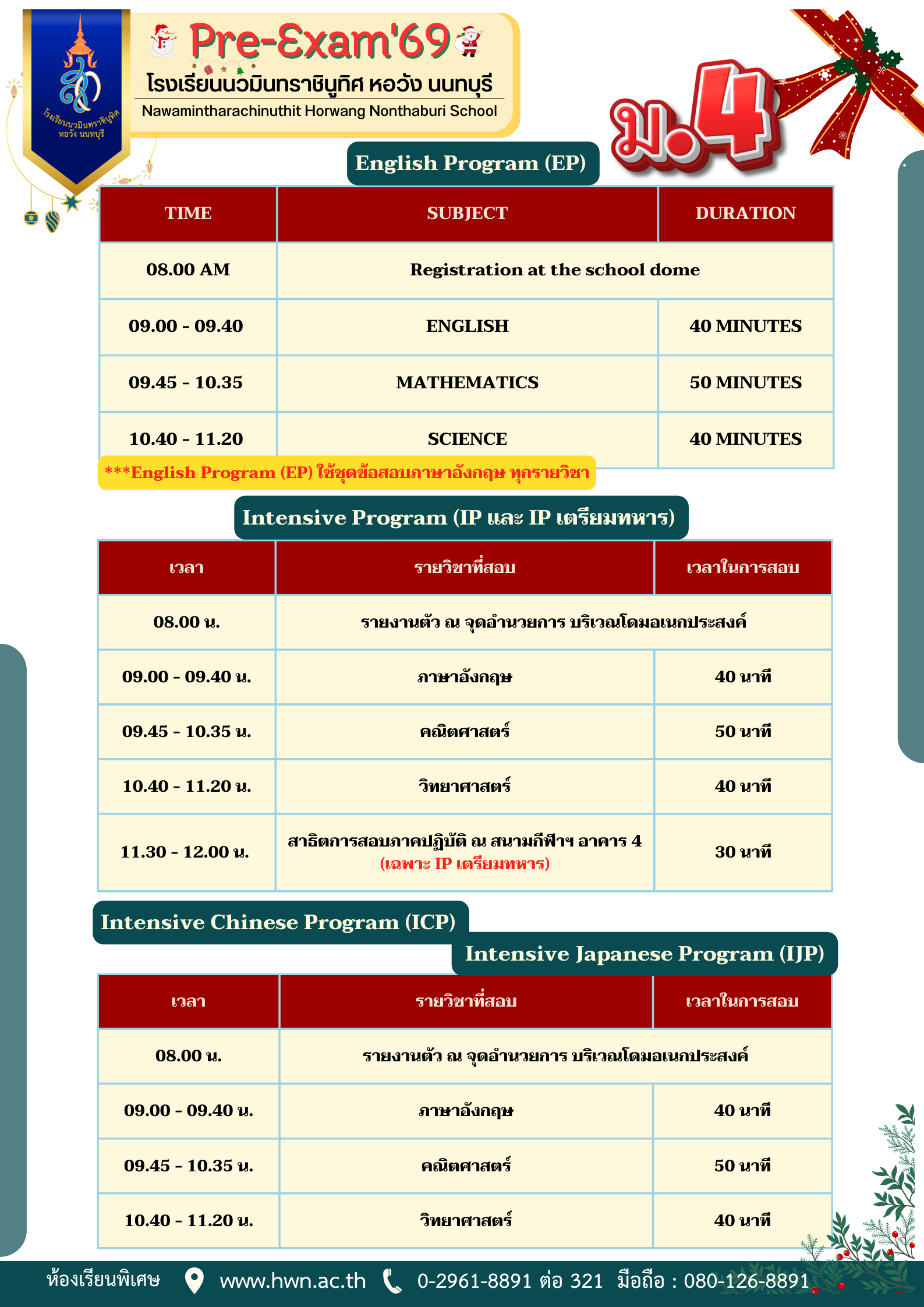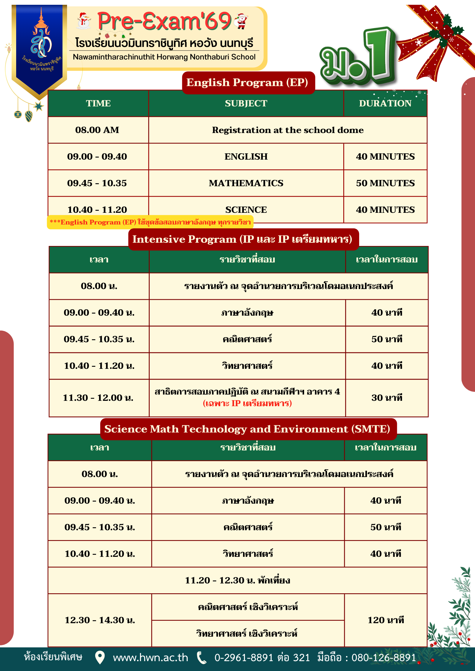 แนวปฎิบัติการเข้าทดลองสอบ ม.1 และ ม.4