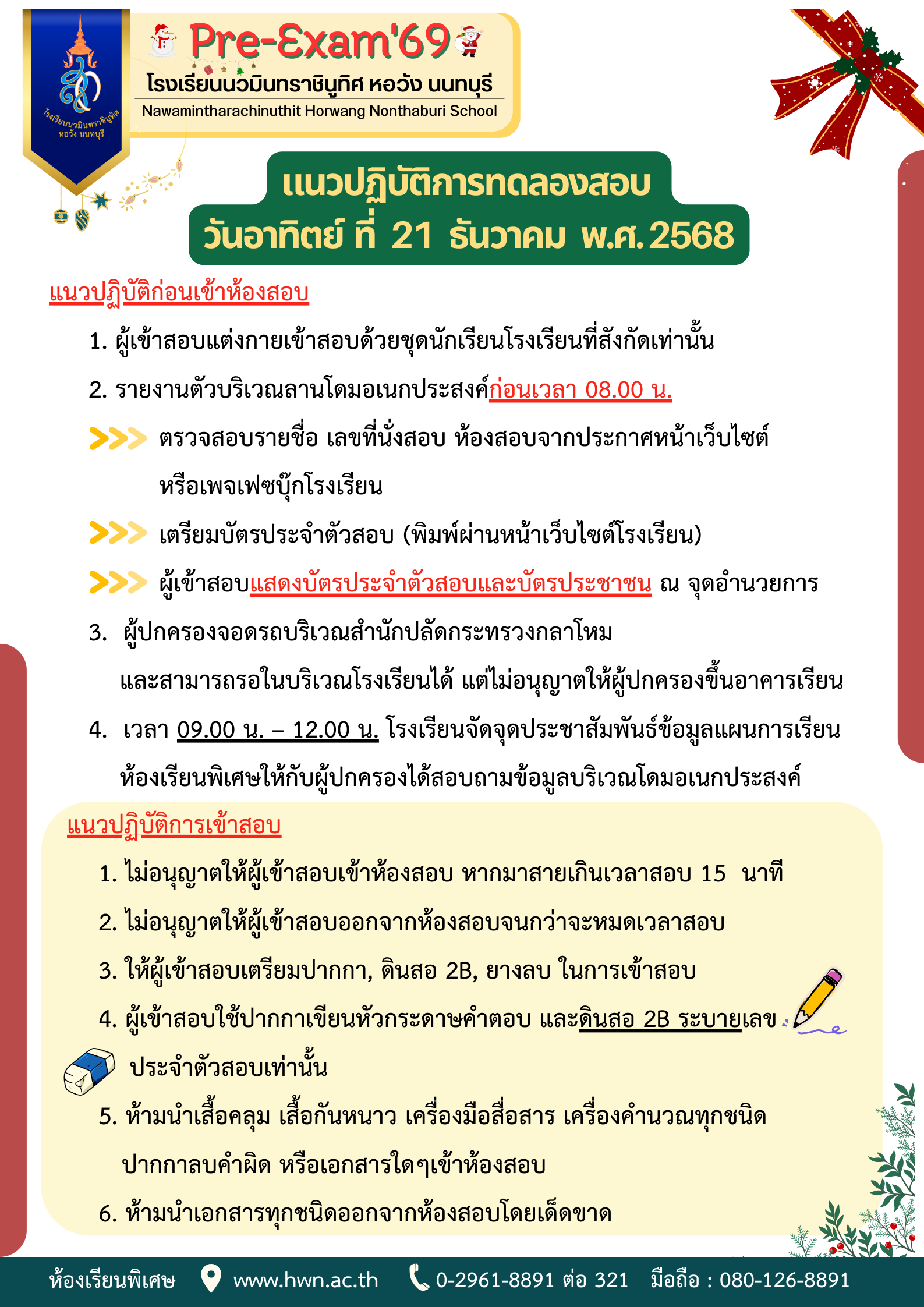 โปรดนำบัตรประจำตัวผู้เข้าสอบ พร้อมบัตรประจำประชาชนหรือบัตรประจำตัวนักเรียน เพื่อยืนยันตัวตนก่อนเข้าสอบ