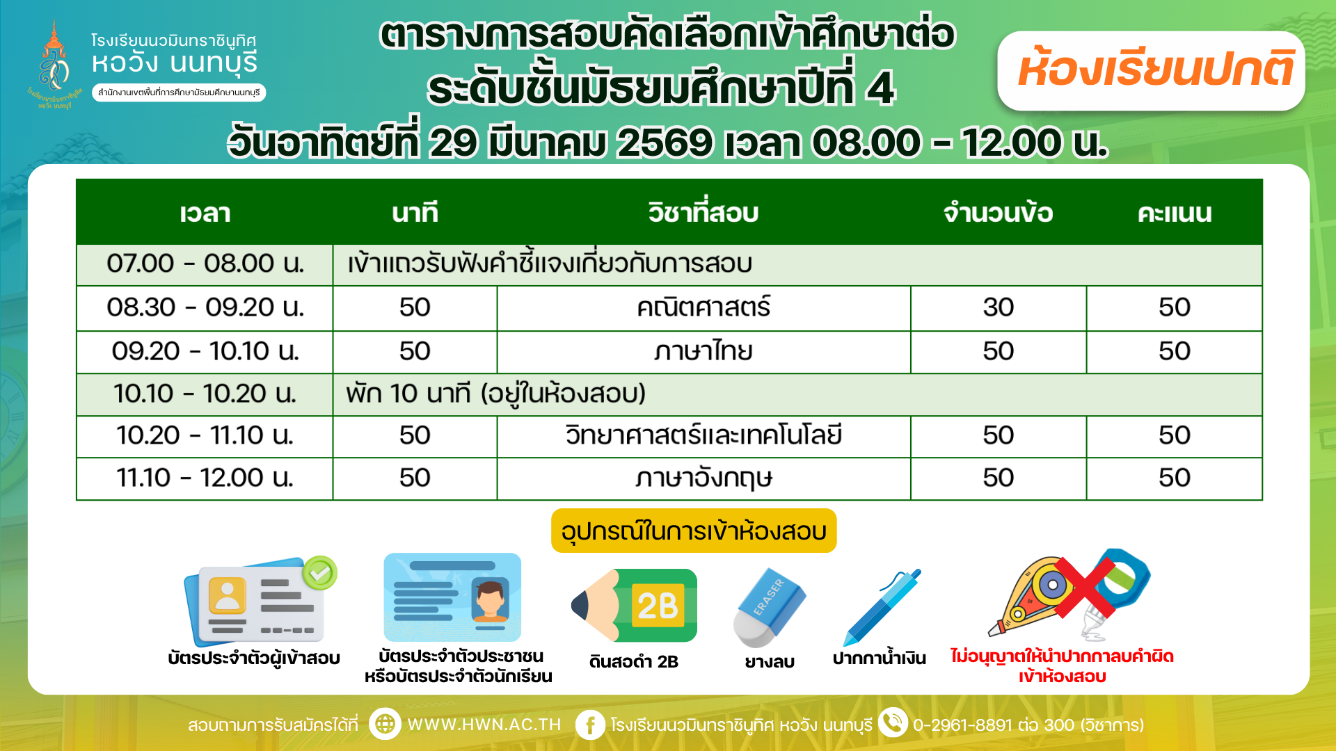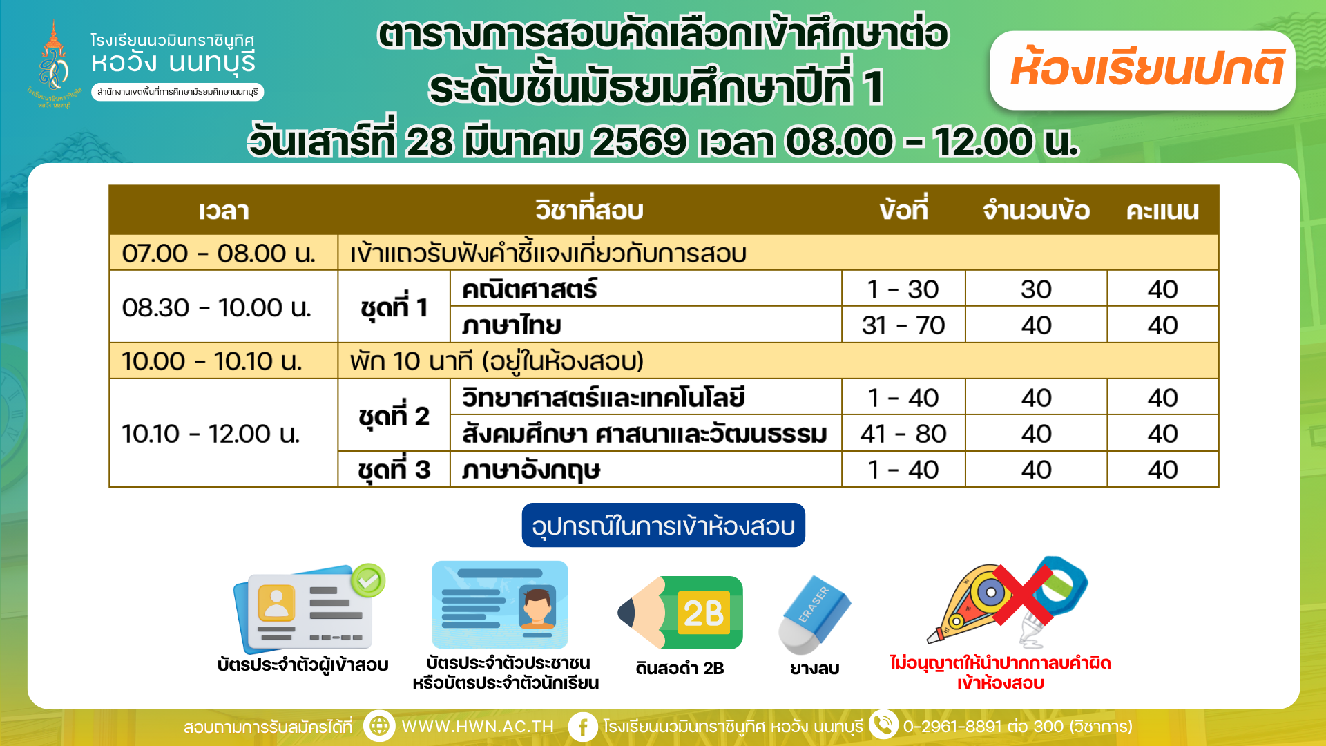 ติดต่อช่องทาง Facebook : โรงเรียนนวมินทราชินูทิศ หอวัง นนทบุรี https://www.facebook.com/horwangnon
